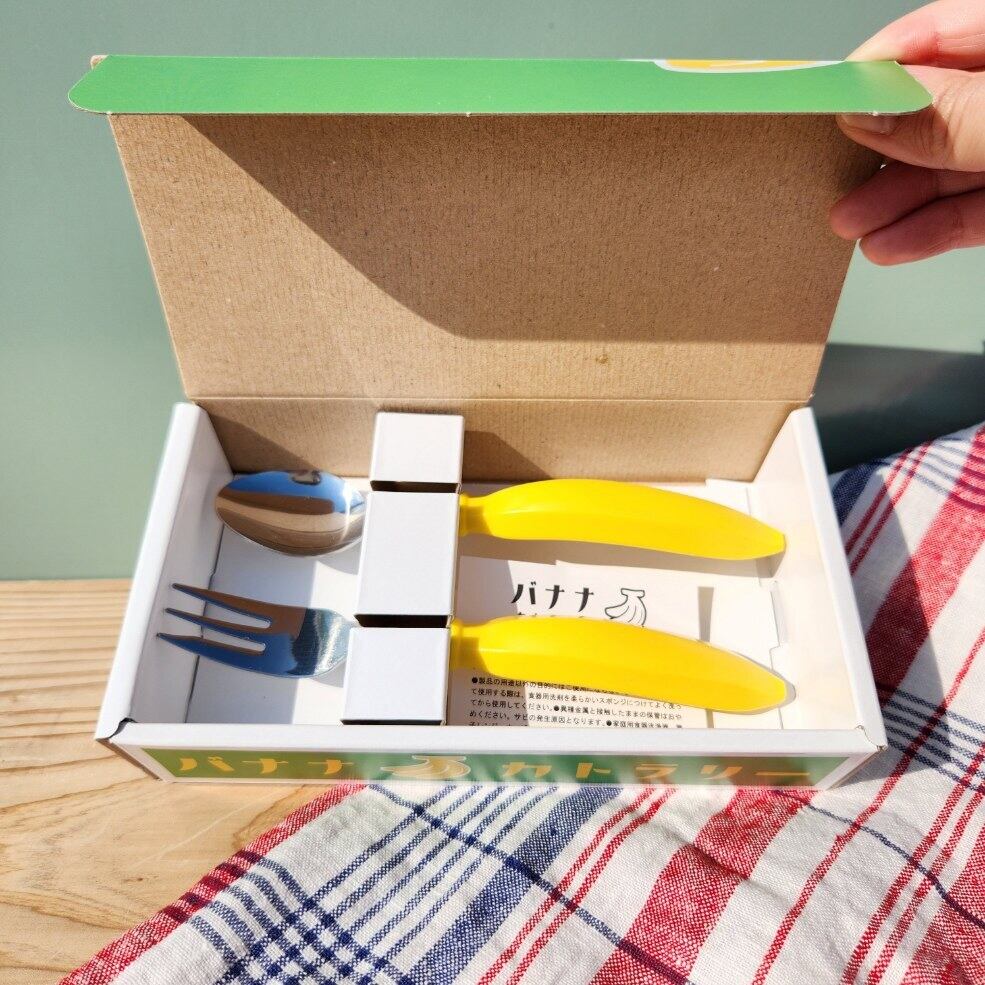 ばなな饅頭と間違えちゃいそうなパッケージが面白くて可愛い! フタをあければ、これまた可愛いバナナのフォーク&スプーンセット! プレゼントにユーモアとかわいいを添えて! 日本製 材質 ステンレス/ABS樹脂 食洗機不可